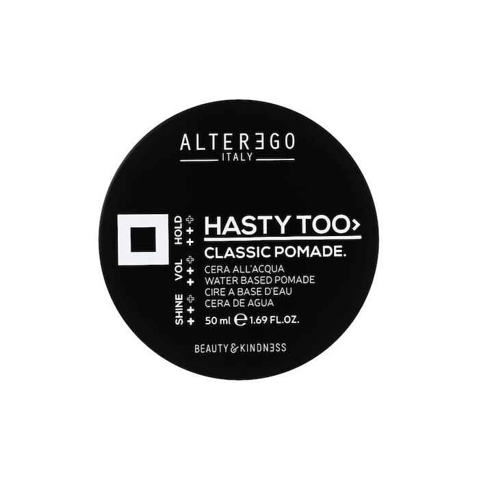 Alter Ego Hasty Too Classic Pomades creamy water-based texture is light and easy to apply, it leaves no residue on the hair and ensures a strong hold that lasts all day.For all hair types, especially ideal for sculpting and structuring short cuts