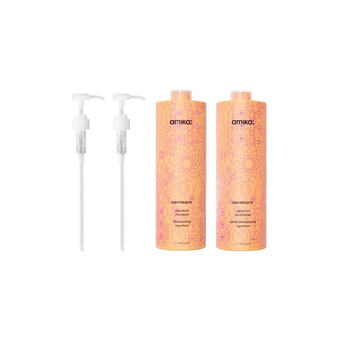 Amika Normcore Signature Shampoo & Conditioner 33.8 oz Duo With Free Liter Pumps