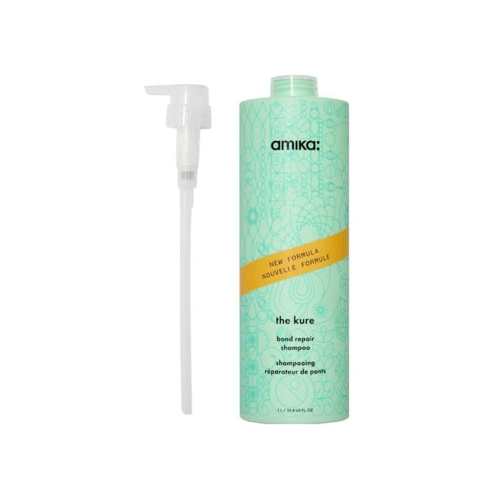 Amika The Kure Repair Shampoo Is a bond fortifying shampoo that luxuriously lathers + is clinically proven to strengthen damaged strands due to everyday stressors, heat + chemical treatments.