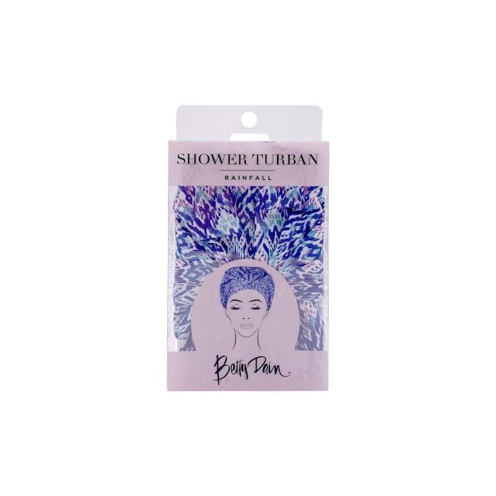 The Shower Turban is the latest trendy comfort fit shower cap from Betty Dain. Each turban is made of water repellant, sound reducing polyester which keeps your hair dry and your head comfortable without annoying, loud crinkling.NO IMPRINTS ON FOREHEAD: An elastic free forehead trim is designed to eliminate forehead creases and imprints to keep your skin looking its best. The sleek turban comes in two fun patterns and its roomy design accommodates even the thickest and fullest hair.Roomy design fits securely but easily accommodates even the thickest, fullest hair. Perfect for preserving hair treatments, blowouts, curls and more, the sleek, modern design is available in two fun patterns. It's perfect for preserving your latest hair treatment from the salon or blowout at the blow dry bar.