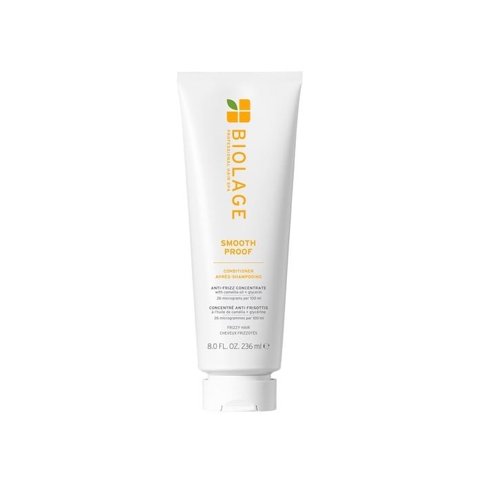 Inspired by natures water-resistant camellia, Biolage Smoothproof Conditioner for frizzy hair provides humidity control and anti-frizz smoothness even in 97% humidity.