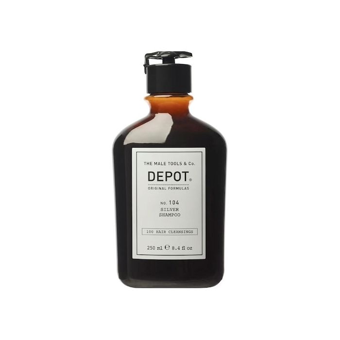Nº 104 Silver Shampoo from Depot is a specific shampoo for gray, white or discolored hair. Soft texture, with delicate cleansing base, surfactants, violet pigments, botanical complex (10-plant extract), essential oils of sage, eucalyptol and mint, for a gentle, balancing, toning, antioxidant, refreshing and softening action.