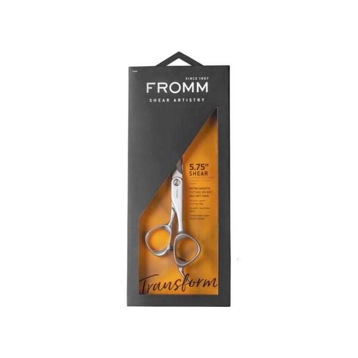 FROMM Transform 5.75" Shear Silver Model #RM-F1010, UPC: 023508019657Features & Benefits:Smooth, quiet cutting edgeDurable Japanese steelComfortable semi-offset handle