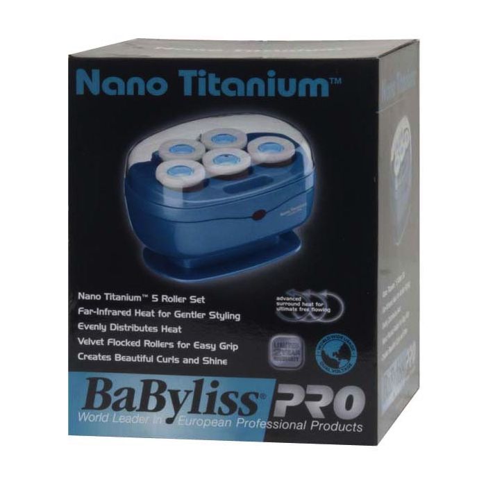 Create silky smooth curls, waves, and gently contoured straight styles with this 5-roller hairsetter. The far-infrared heat generated by the rollers' nano titanium ceramic cores is easy on hair and ensures client comfort. The set includes 5 velvety flocked 1-1/2" jumbo rollers, 5 butterfly clips and 5 color-coded metal clips. The set’s compact size fits nicely into any salon situation and dual voltage lets you take it anywhere.