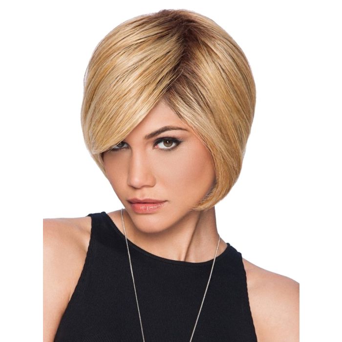 This modern wig features bangs that are swept to the side, while ends are sleek and taper in to the nape for a captivating new look.