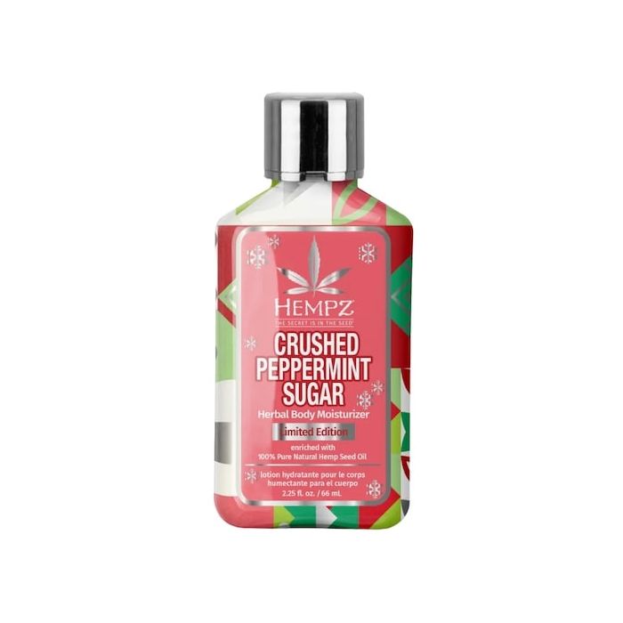 Cozy up to our Crushed Peppermint Sugar Herbal Body Moisturizing Lotion. It nourishes dry skin with vanilla, sugarcane, peppermint extract, and, of course, 100% pure hemp seed oil. Vegan and cruelty free. Manufactured in USA.