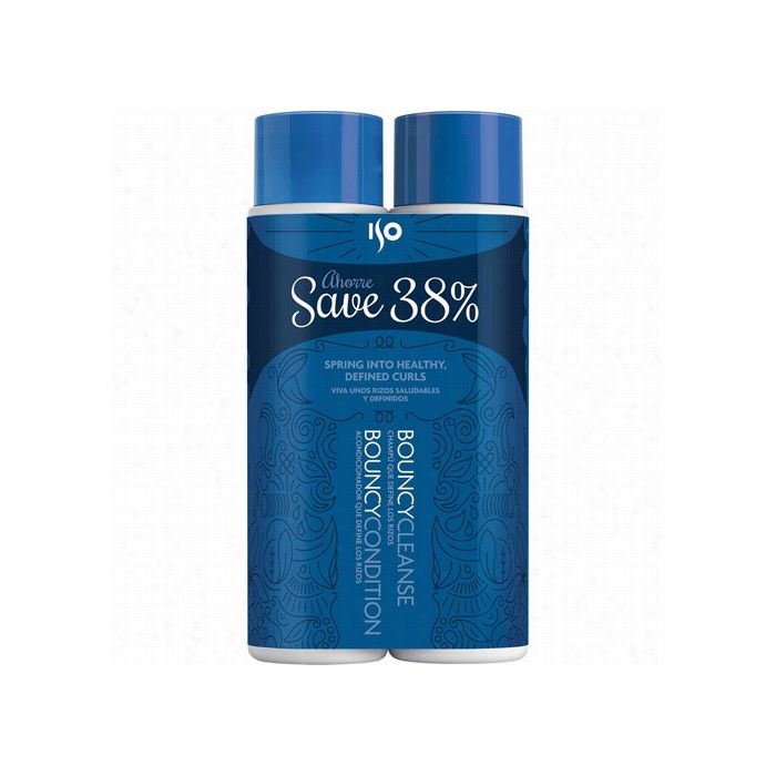 ISO Bouncy Cleanse & Condition Duo is a curl-enhancing duo. Includes a gentle shampoo that defrizzes and creates body as well as a moisturizing conditioner. Formulated with silicone, guar gum, natural proteins and sunflower derived conditioners to promote curl and create smooth, shiny hair.