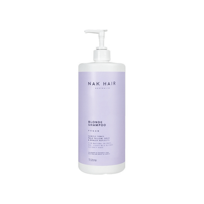 NAK Hair Blonde Shampoo is a light toning cleanser designed to gently tone pale yellow, gold or brassy reflects. Violet pigments create cool pale reflects in natural blonde, pre-lightened blonde and grey hair.