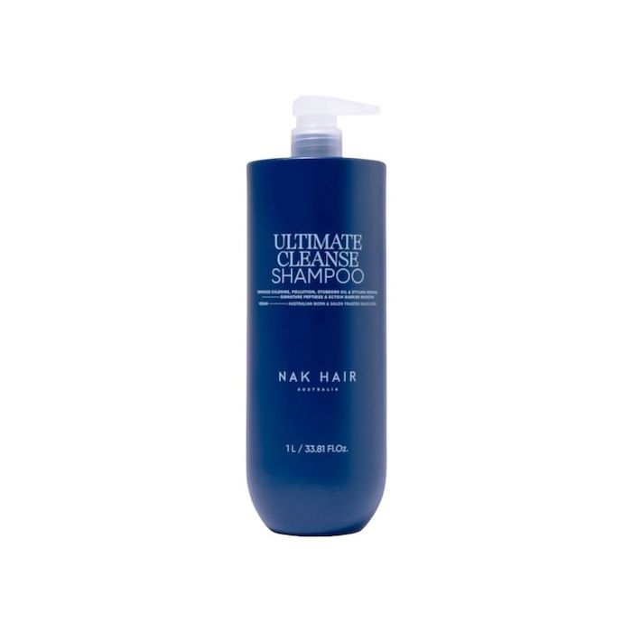 NAK Hair Ultimate Cleanse Shampoo removes chlorine, pollution, stubborn oil, and styling residue. It is a purifying cleanser that revitalizes strands without stripping the essentials.