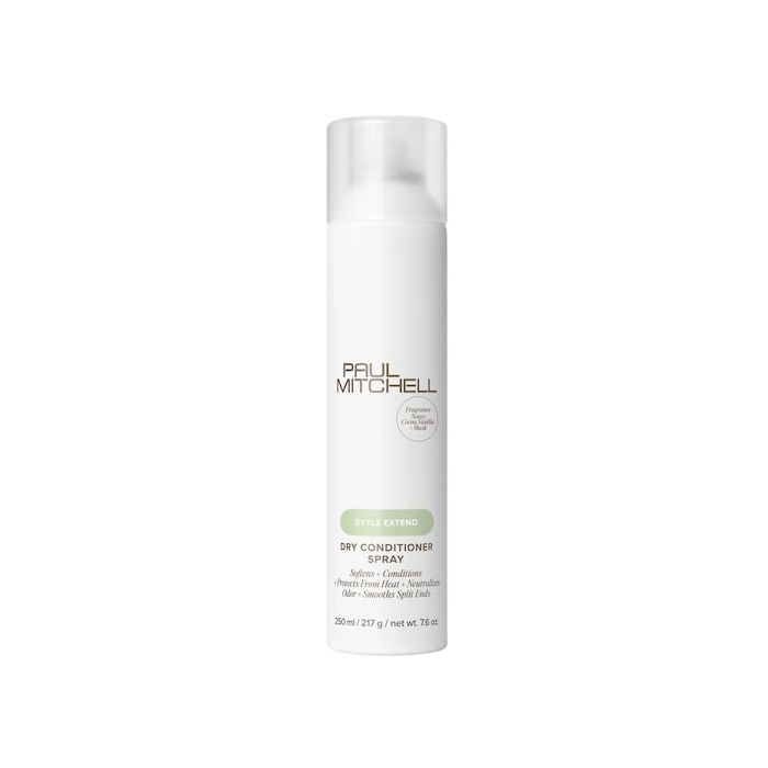 Paul Mitchell Dry Conditioner Spray instantly absorbs into hair and provides heat protection for a second-day style refresh. This lightweight dry conditioner spray hydrates, detangles and smooths hair. It neutralizes odor and leaves strands soft, shiny and frizz free with an irresistible fragrance featuring gourmand notes of cocoa, vanilla and musk.