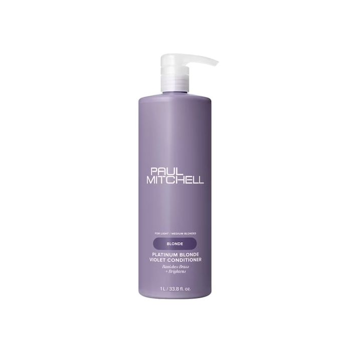 Keep your blonde hair cool with Platinum Blonde Violet Conditioner from Paul Mitchell. This purple conditioner banishes brassy tones and brightens hair.