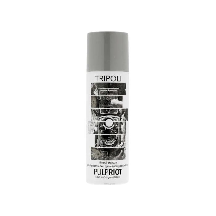 Tripoli thermal protectant spray is a light aerosol mist spray formulated to help create a shield between hair and hot styling tools. With UV filter. For all hair types.