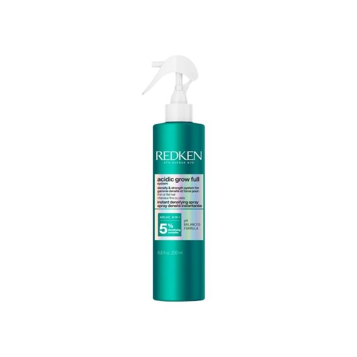 Redken Acidic Grow Full Instant Densifying Spray is a lightweight leave-in treatment spray formulated with 5% Densifying Complex that delivers instant fullness and root lift while protecting hair from heat styling up to 450°F.
