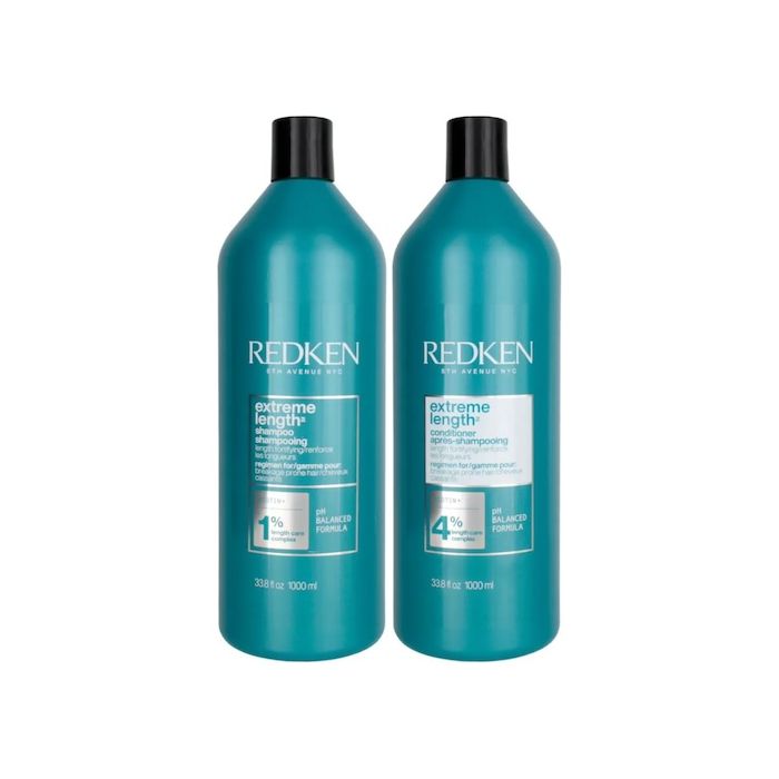 Help your hair achieve length and strength with the Redken Extreme Length Shampoo & Conditioner Set.