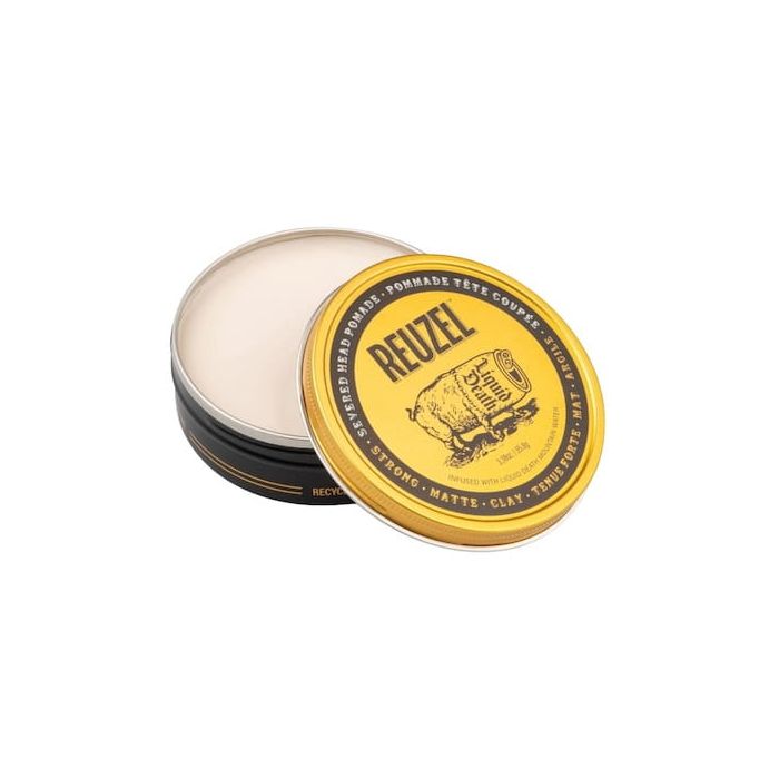 REUZEL® x Liquid Death Severed Head Clay Pomade is a limited-edition clay pomade infused with Liquid Death Mountain Water. This gritty, matte-finish formula delivers a strong, workable hold that creates piecey, roughed-up texture and all-day control. Ideal for bold, textured styles with zero shine.