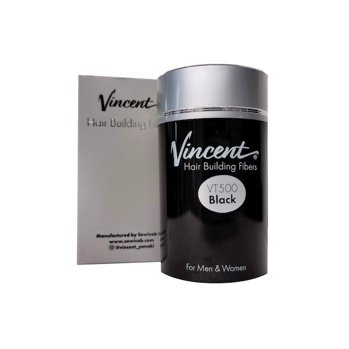 The Vincent Hair Building Fibers help cover thinning hair, provide a more distinct hair line that covers "widows peak "and makes. the hair look fuller on the scalp. Our hair building fibers come in three colors, Black, Dark Brown, and Medium Brown.