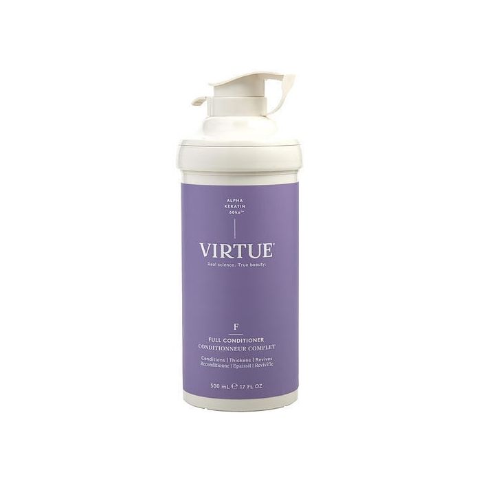 Virtue Labs Full Conditioner thickens hair without weighing it down. It deeply moisturizes the hair, creating lasting volume, body, and luster. Infused with our first-of-its-kind Alpha Keratin 60ku¨ protein, Full Conditioner was specifically developed to add volume and density to fine, limp hair strands.