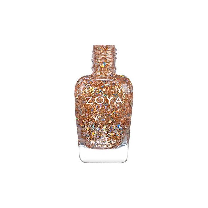 Zoya in Kaede can best be described as a gold metallic fleck with holographic foil, the perfect overlay to pair with your favorite Zoya shade, or wear alone to dazzle the night away.